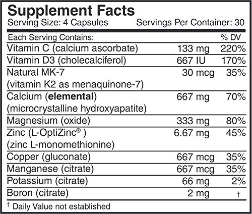 cardiotabs Bone Essentials es un producto altamente absorbable, procedente de calcio natural que contiene microcristalino hydroxyapatite (mcha). mcha proporciona minerales esenciales en un orgánico, collagen-rich proteínas medio ambiente y se ha demostrado clínicamente para no Spike sangre los niveles la forma de otras formas, tales como el carbonato de calcio y citrato de calcio, puede. Vitamina D3, vitamina K2, potasio y otros nutrientes clave se combinan con mcha para apoyo de huesos de más fuerte y más juvenil cardiovascular y la salud arterial.* Salud Reclamación: adecuada de calcio y vitamina D, como parte de una dieta bien equilibrada, junto con la actividad física, puede reducir el riesgo de osteoporosis.